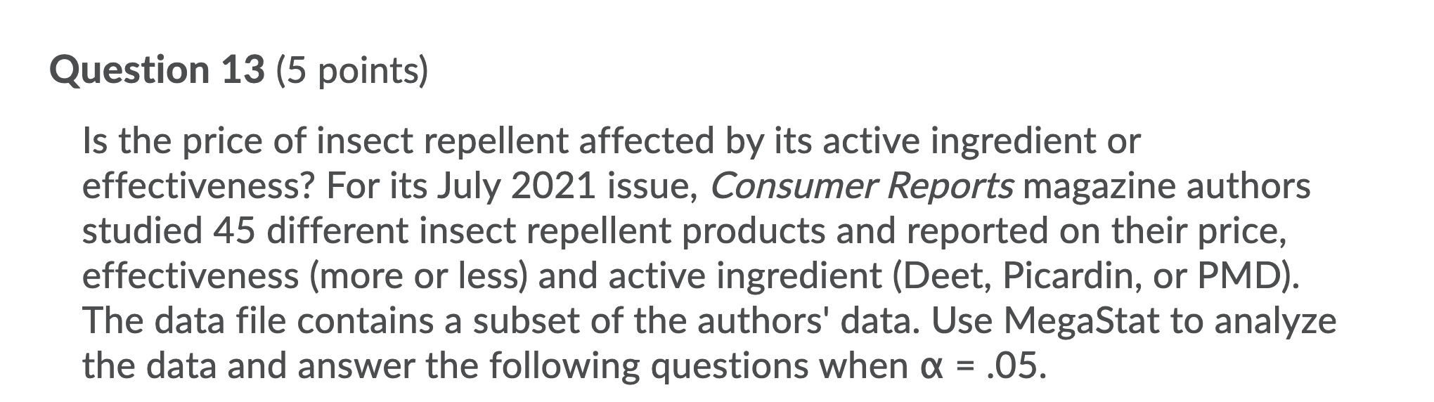 Solved Question 13 (5 points) Is the price of insect Chegg com