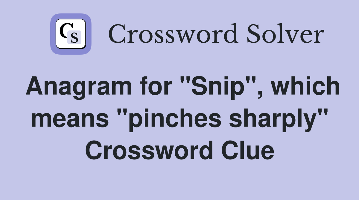 Anagram for quot Snip quot which means quot pinches sharply quot Crossword Clue