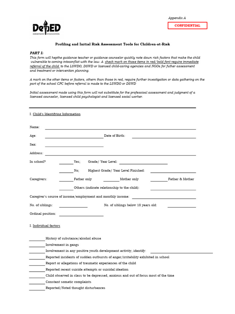 E Enclosure No 13 Profiling and Initial Risk Assessment Tools for CAR