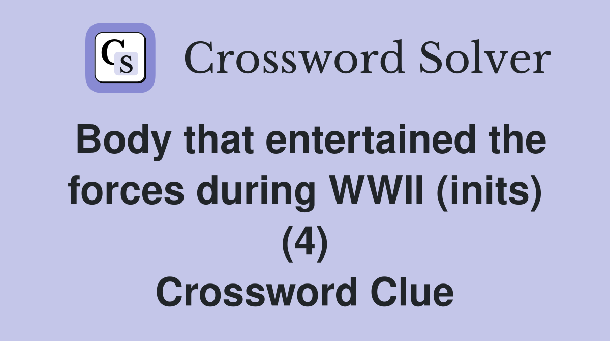 Body that entertained the forces during WWII (inits) (4) Crossword