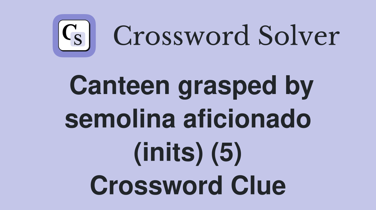 Canteen grasped by semolina aficionado (inits) (5) Crossword Clue
