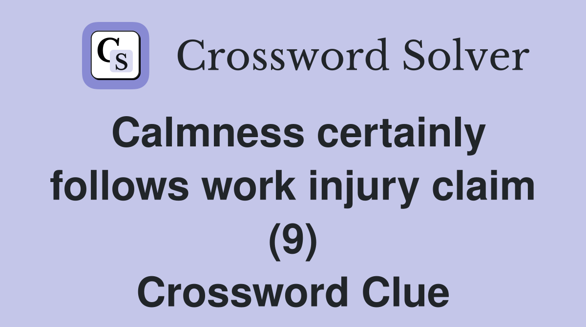 Calmness certainly follows work injury claim (9) Crossword Clue
