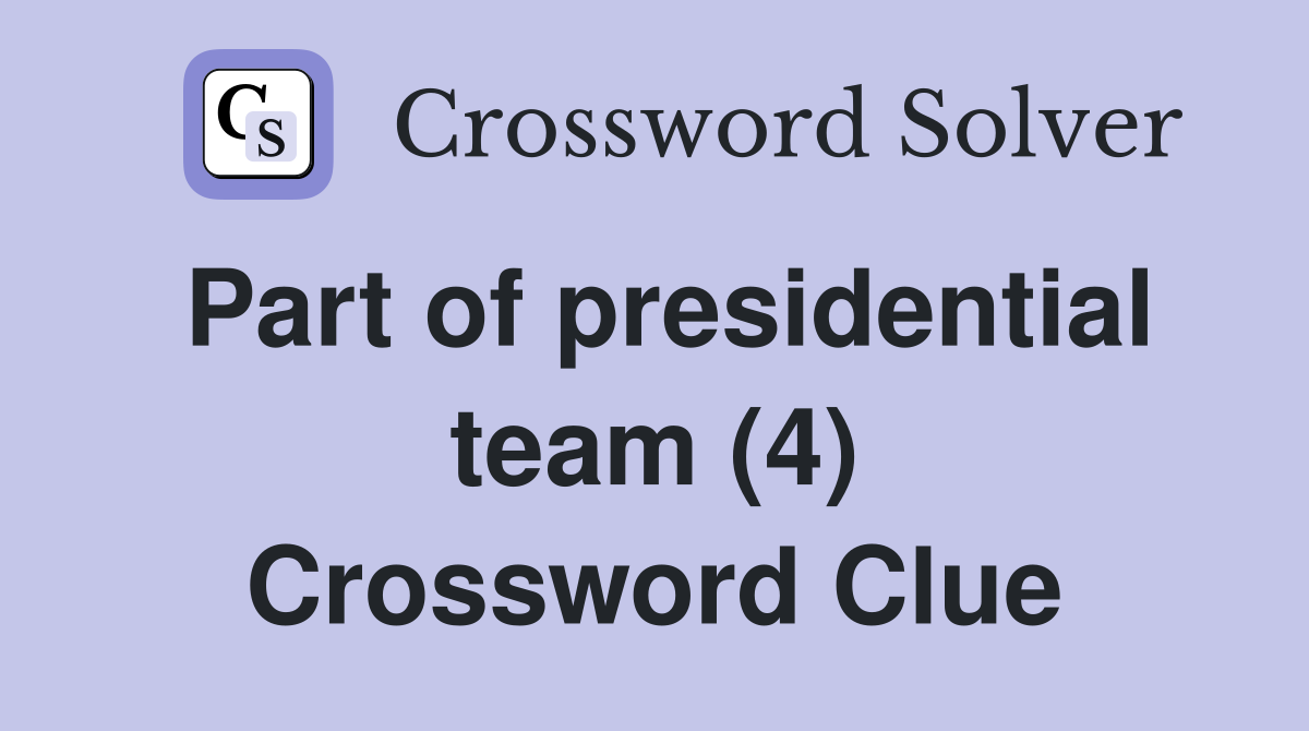 Part of presidential team (4) Crossword Clue Answers Crossword Solver