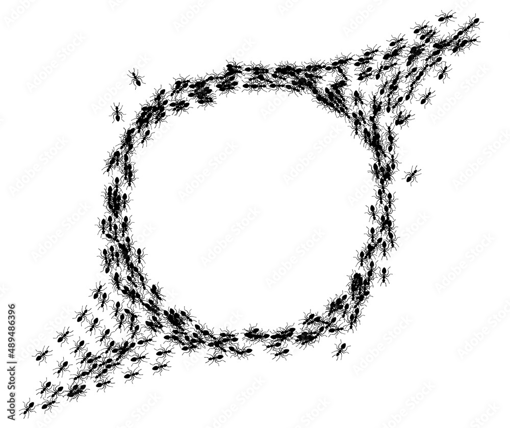 Ants Trail Circle Frame Line Of Working Ants On White Background