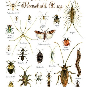 Print Common Household Bugs Watercolor Insects Painting Natural