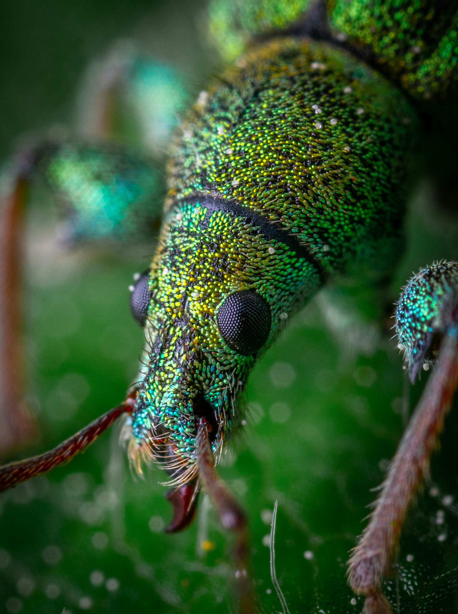 Green Beatle Insect Macro Close Up Detail Background Black Red Macro