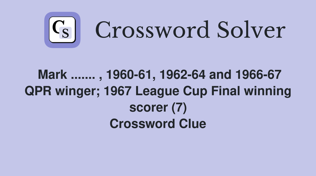 Mark 1960 61 1962 64 and 1966 67 QPR winger 1967 League Cup