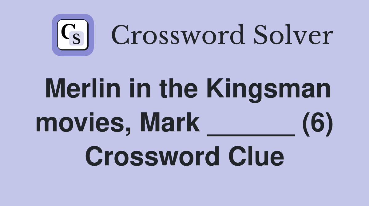 Merlin in the Kingsman movies Mark (6) Crossword Clue Answers