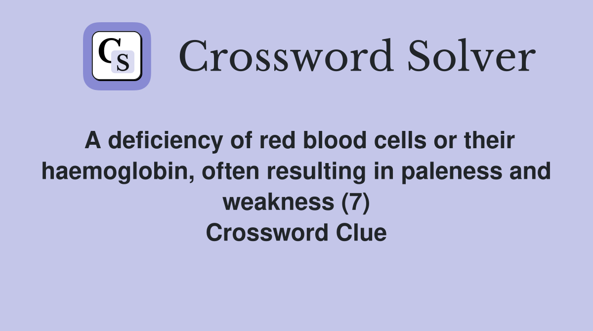 A deficiency of red blood cells or their haemoglobin often resulting