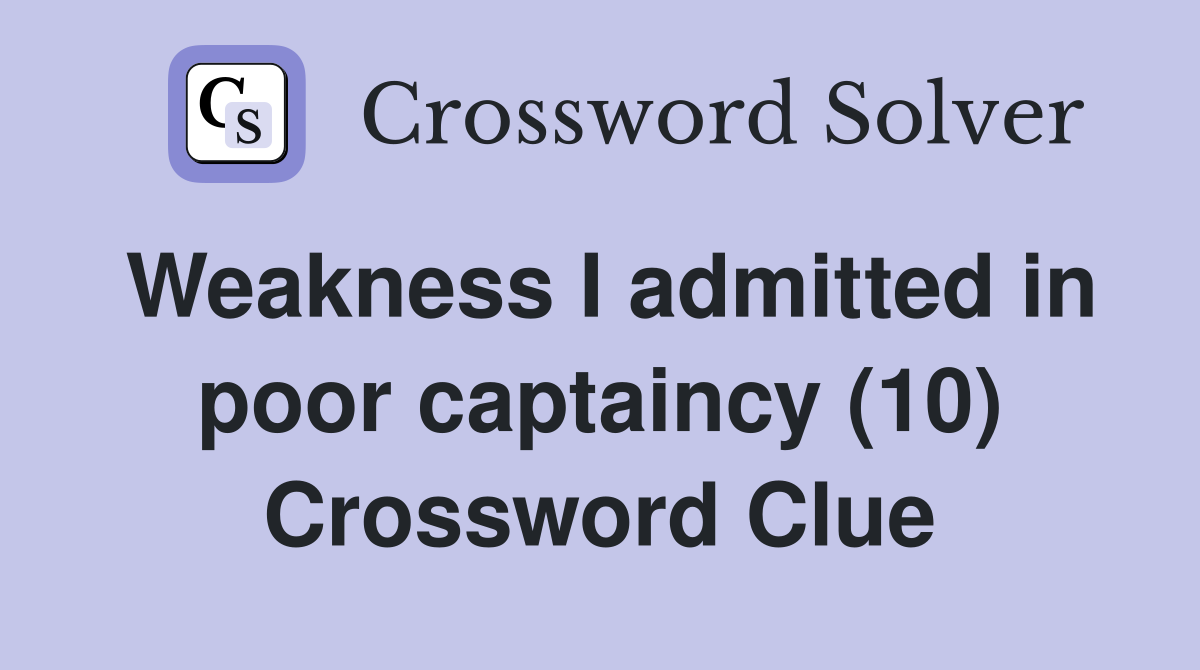 Weakness I admitted in poor captaincy (10) Crossword Clue Answers