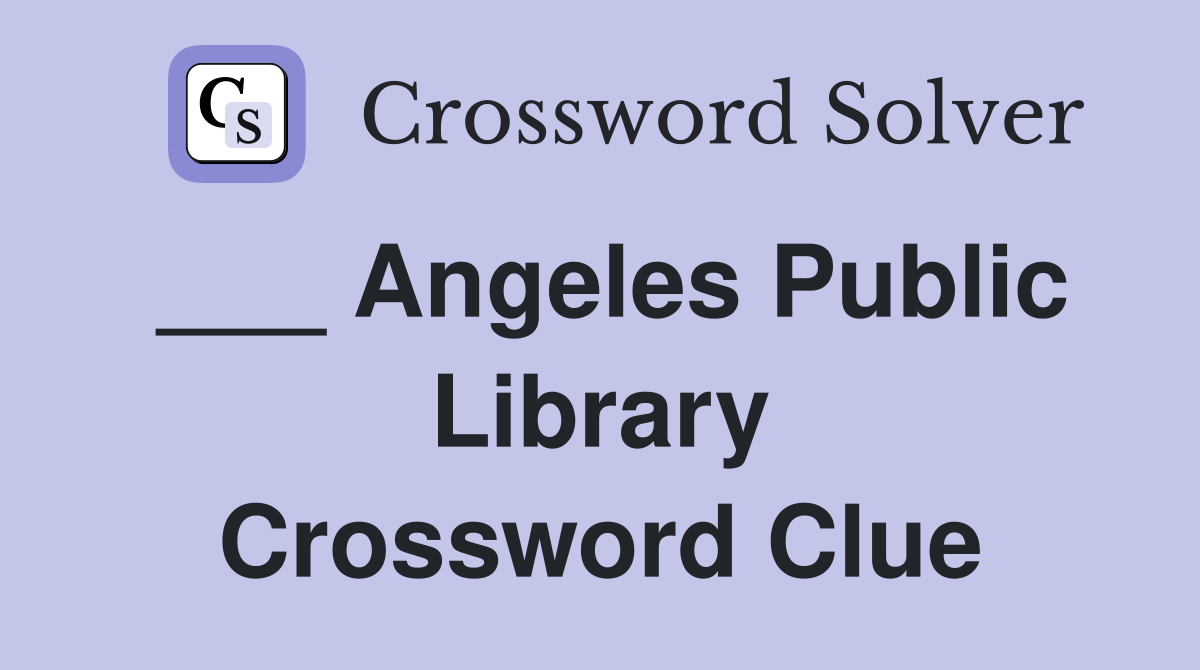 Angeles Public Library Crossword Clue Answers Crossword Solver