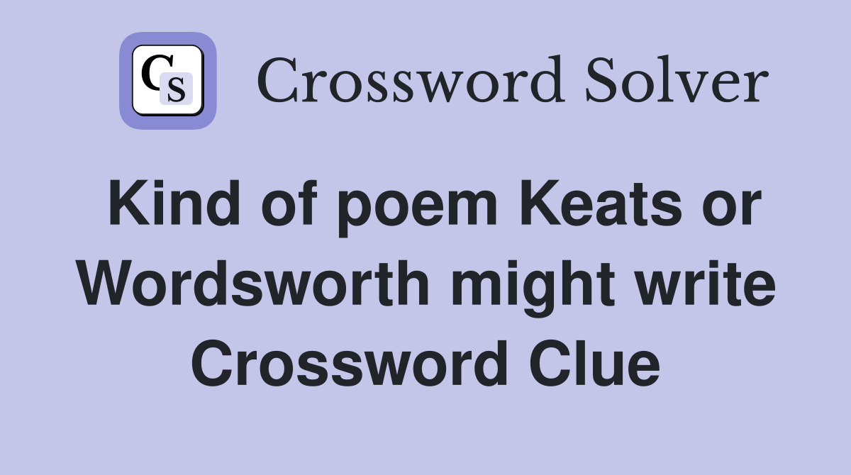 Kind of poem Keats or Wordsworth might write Crossword Clue Answers