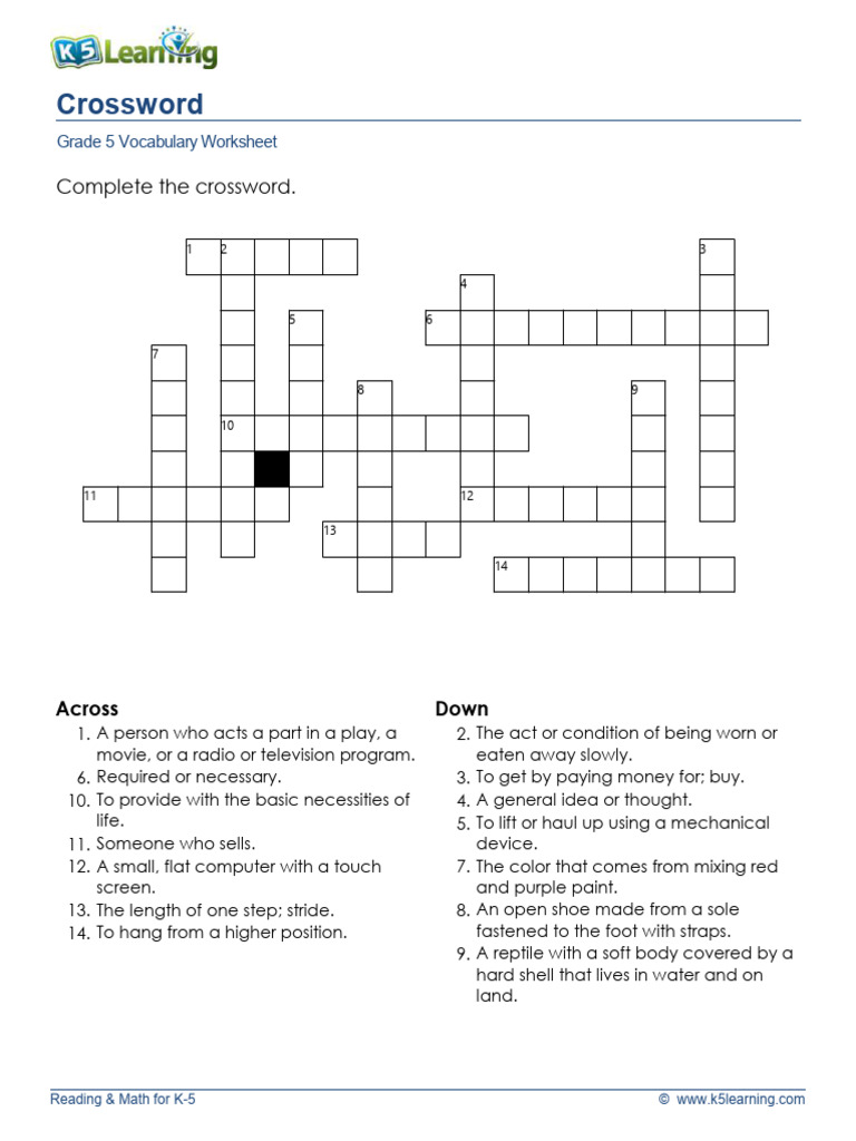 Grade 5 Crossword 1 Download Free PDF Fashion Softlines (Retail)