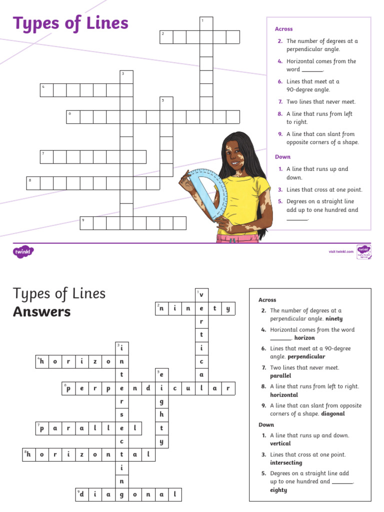 Geometry of Straight Lines Terminology Crossword Twinkl