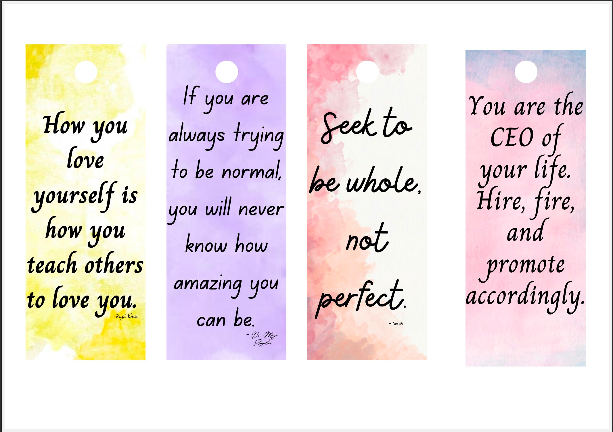 Printable Inspirational Quotes Bookmarks Set of Four Bookmarks
