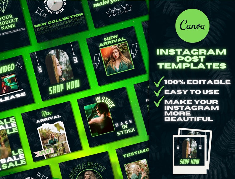 Green Neon Instagram Post Template Editable Instagram Business Post