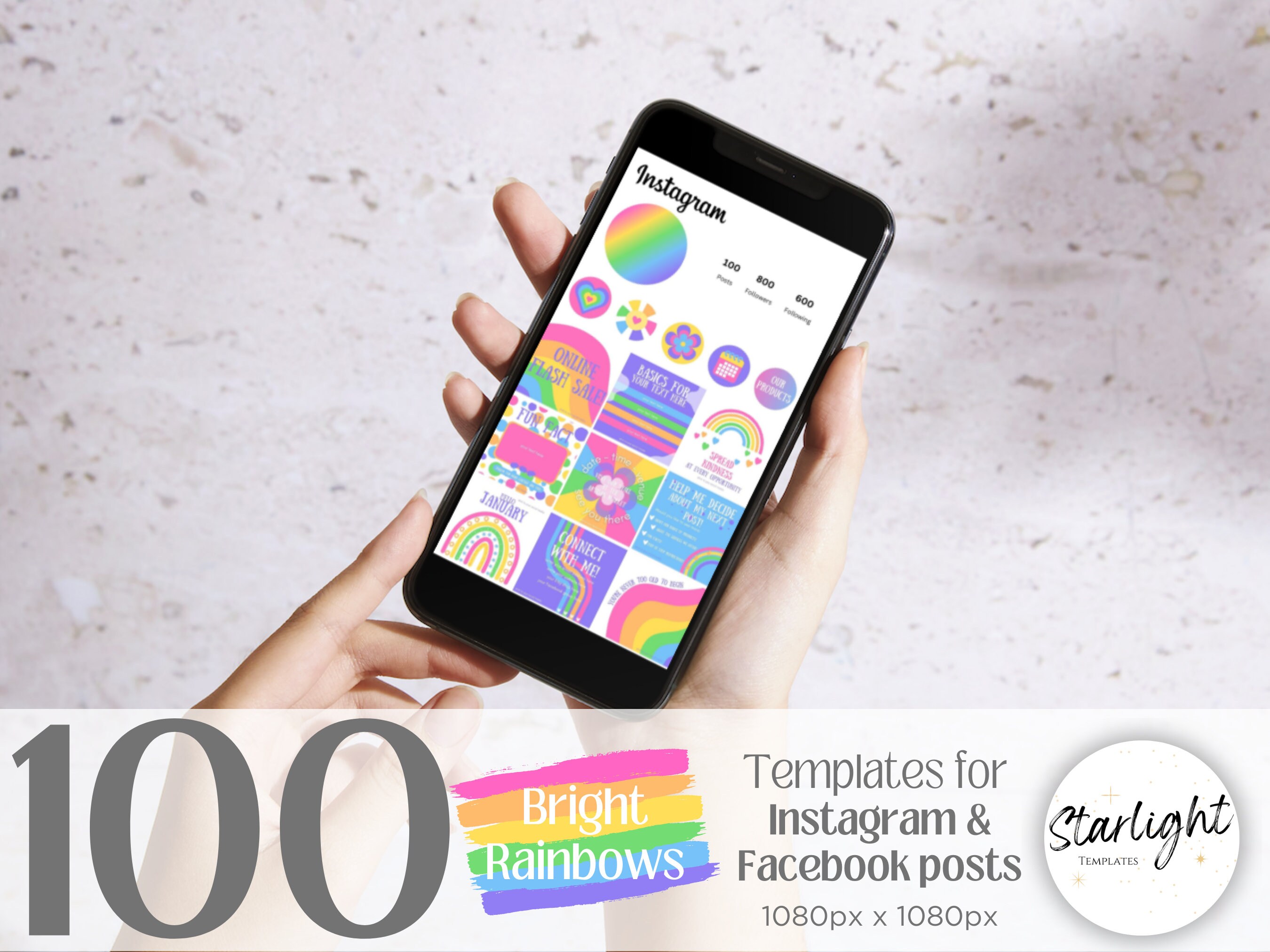 Bright Rainbow Instagram Post Templates Colorful Canva Templates