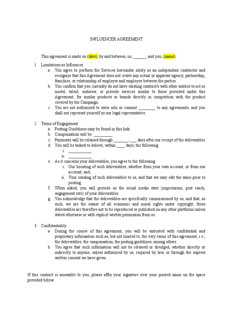 Here are some of the images for Instagram Influencer Agreement Template that we found in our website database.