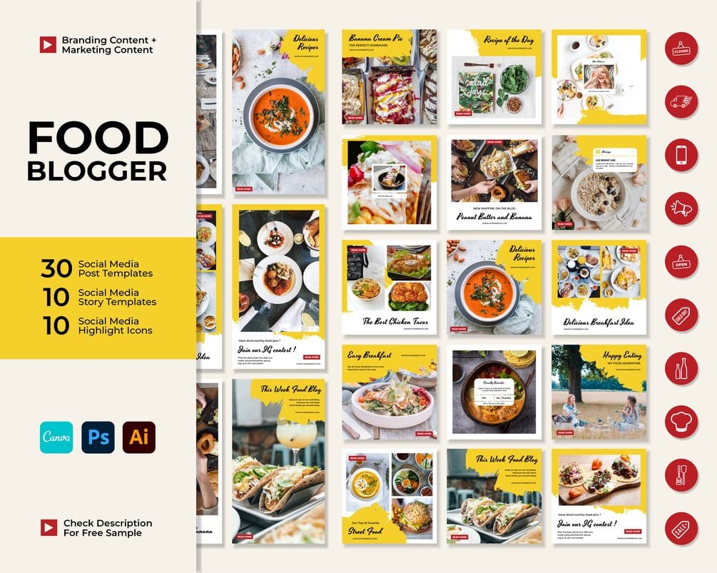 Instagram Marketing Templates Food Beverage Free Story and Icon