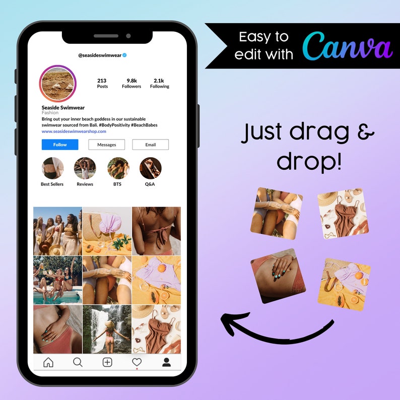 Editable Instagram Profile Mock up Templates for Etsy: Feed Reels
