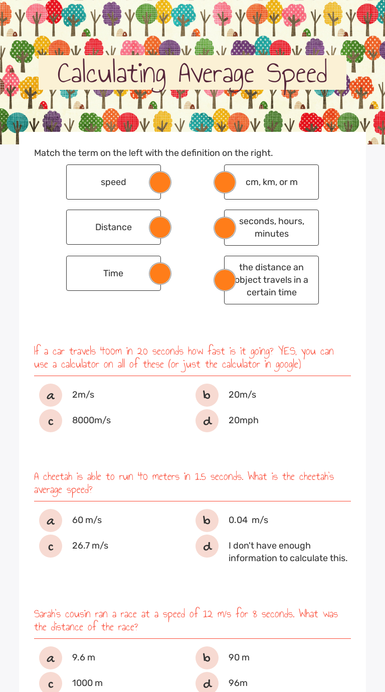 Average Speed Worksheet