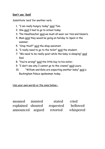 Use Another Word instead of SAID Teaching Resources