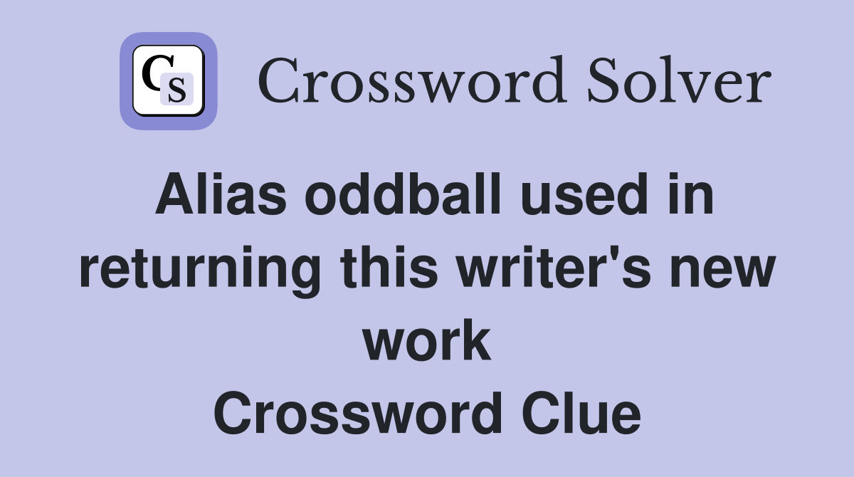 Alias oddball used in returning this writer #39 s new work Crossword Clue