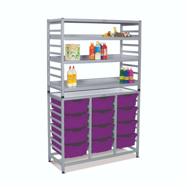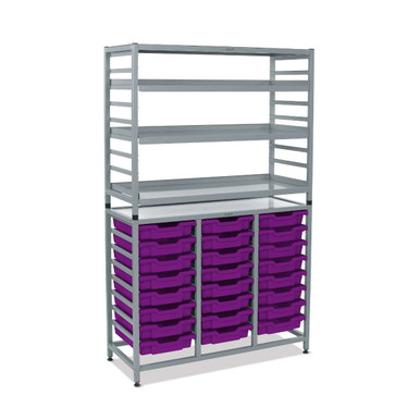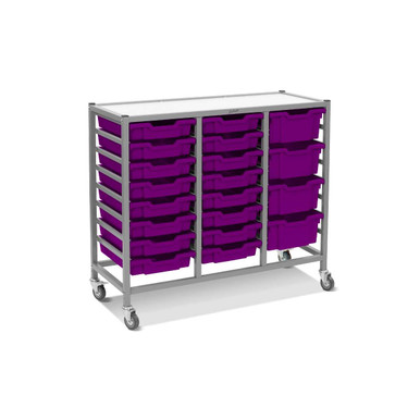 Gratnells Callero Triple School Activity Cart Silver 6 Jumbo Plum