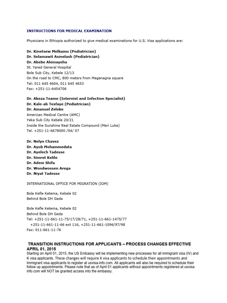 Instructions For Medical Examination: Transition Instructions For