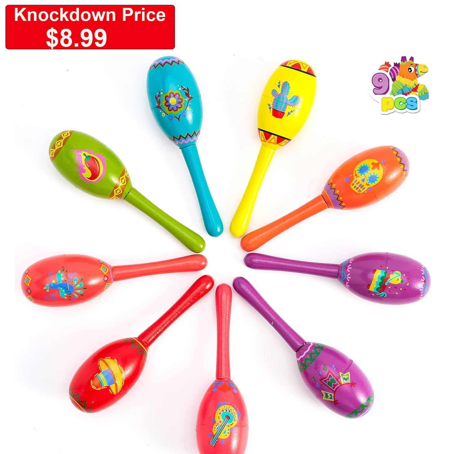 JOYIN 9 Pcs Fiesta Wooden Maracas for Cinco De Mayo Party Favors