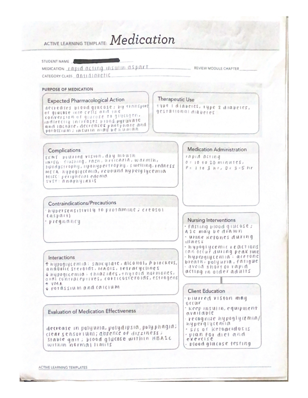 Medication Template Rapid Acting Insulin Active Learning Tem