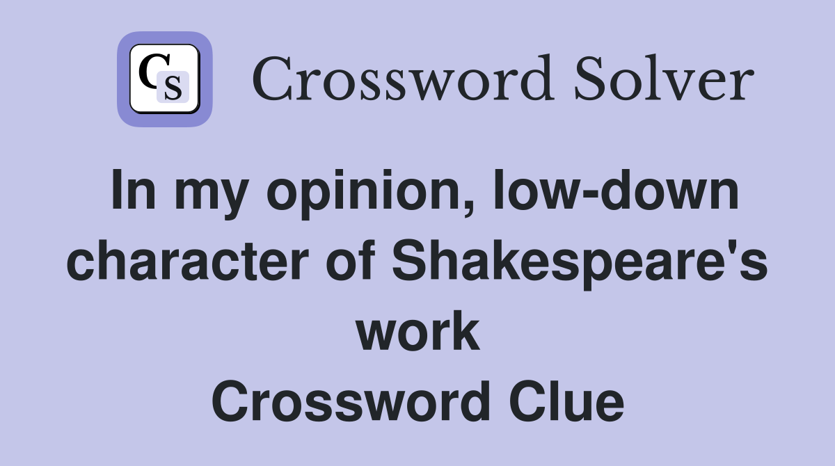 In my opinion low down character of Shakespeare #39 s work Crossword