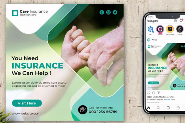 Abstract professional Insurance Agency Flyer / Instagram Post Template
