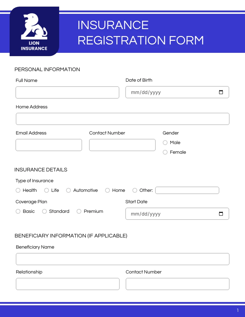 Free Insurance Form Templates Venngage