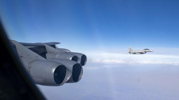 U S B 52H Bombers Integrate with Italian Eurofighters During Rare