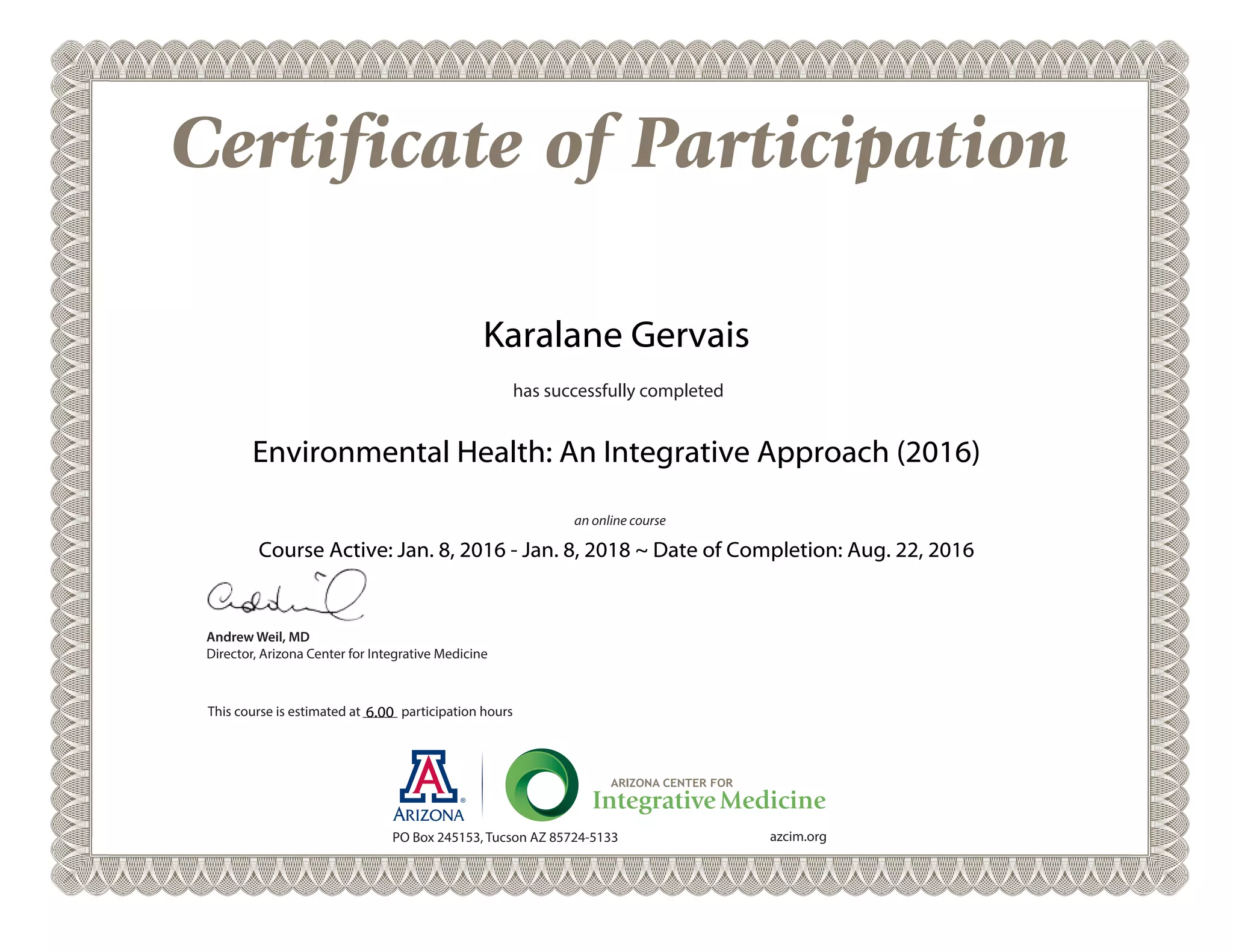 Education: Andrew Weil Center for Integrative Medicine
