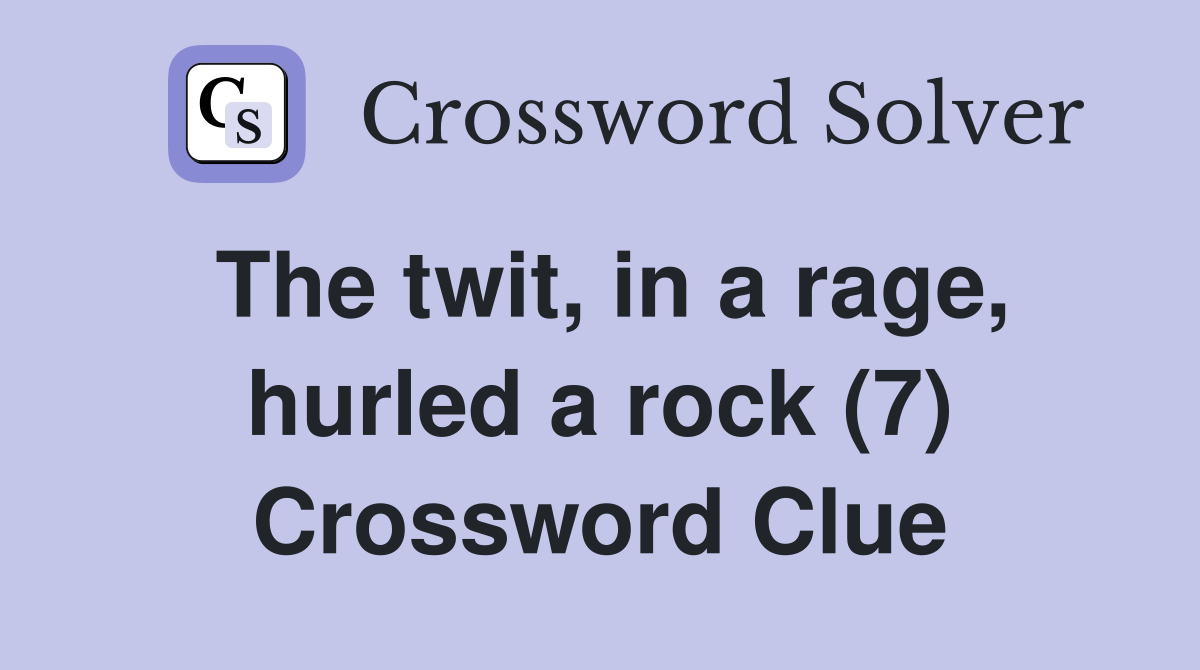 The twit in a rage hurled a rock (7) Crossword Clue Answers