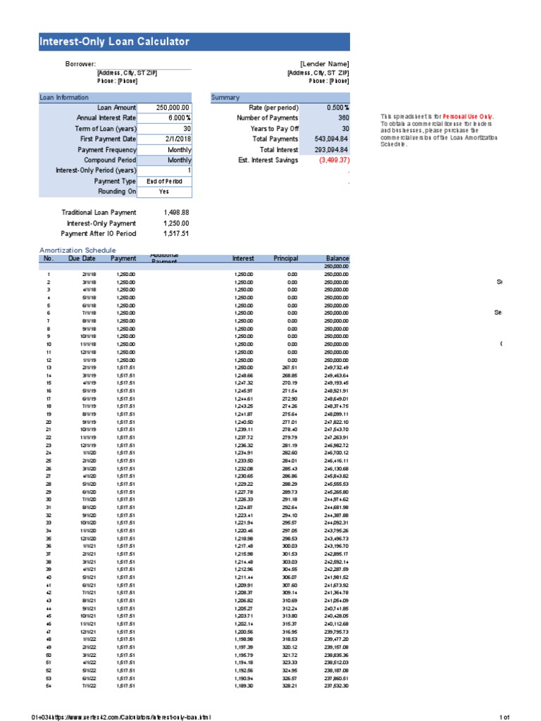 Interest Only Loan Calculator Free Download