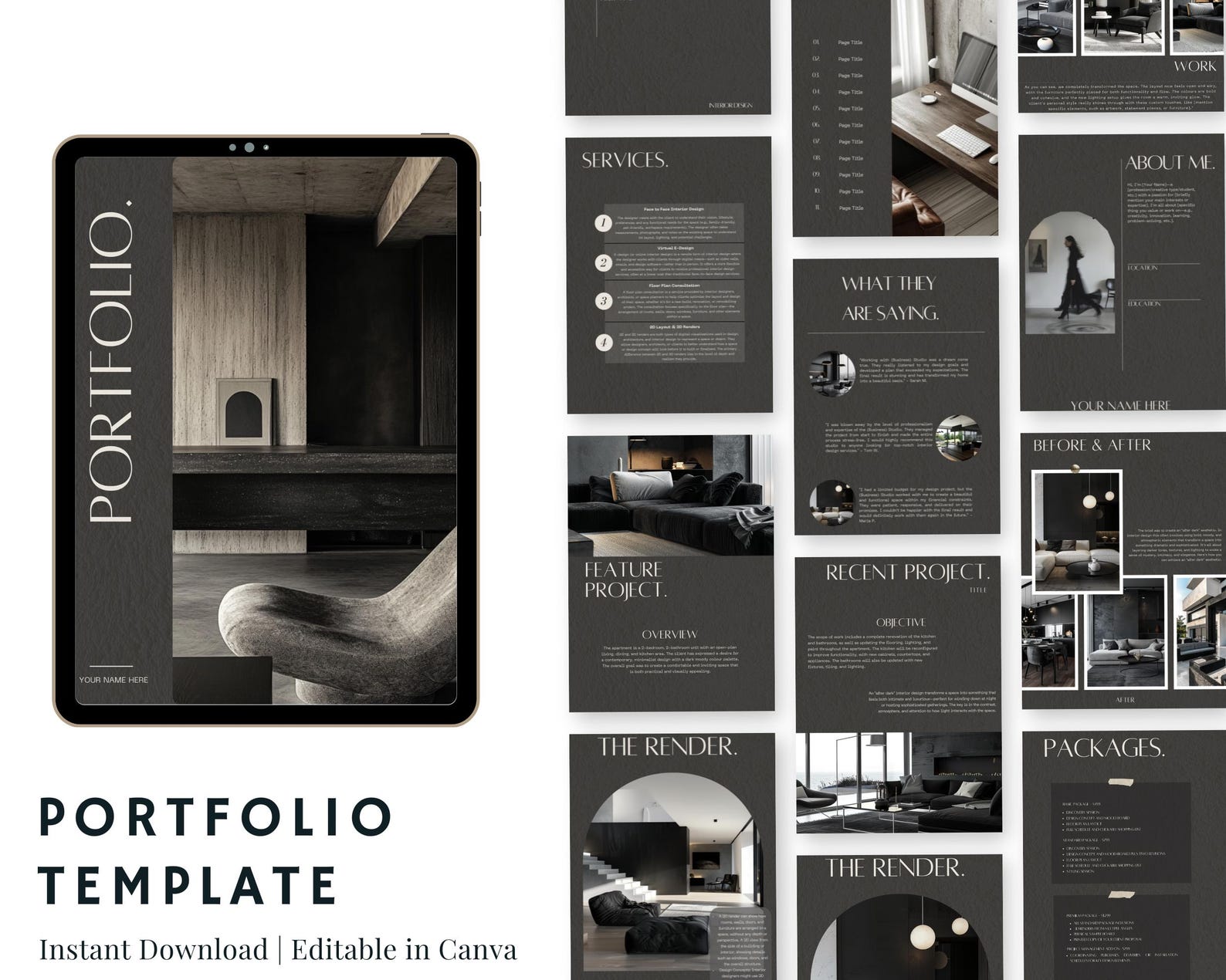Interior Design Portfolio Canva Template: Minimal Elegant Look Book