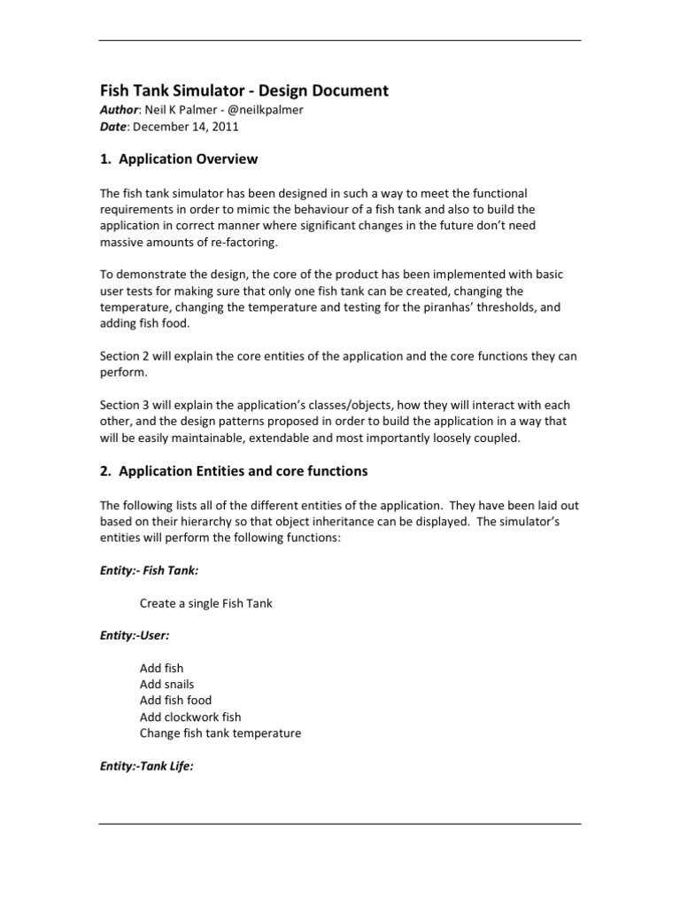 Fish Tank Design PDF Object (Computer Science) Inheritance