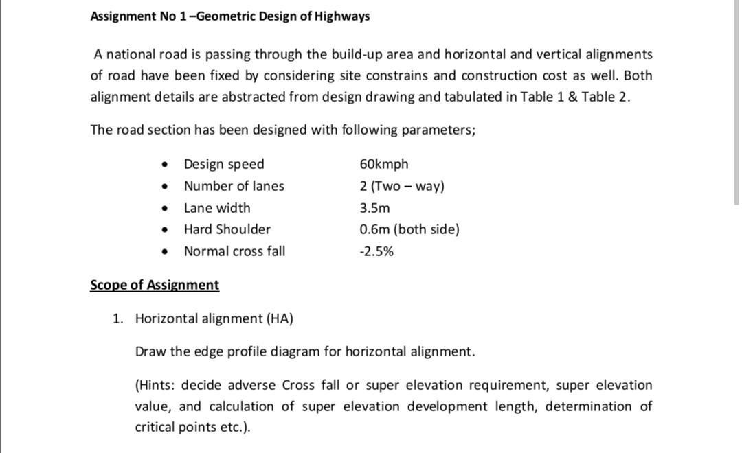 Solved Assignment No 1 Geometric Design of Highways A Chegg com