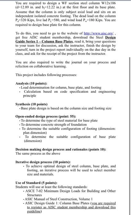Instructions: Calculate the design base shear along Chegg com