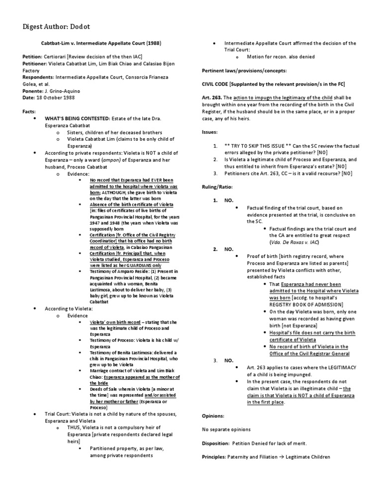 Cabtbat Lim v Intermediate Appellate Court (1988) docx Birth