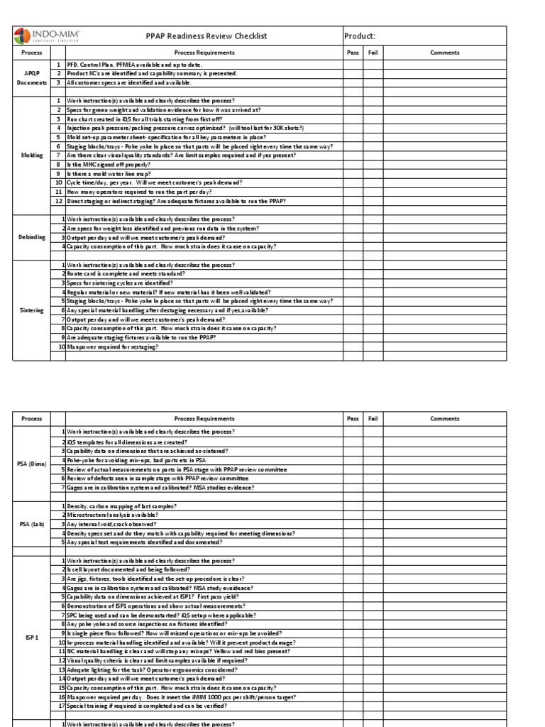 PPAP Readiness Audit PDF Business Process Business