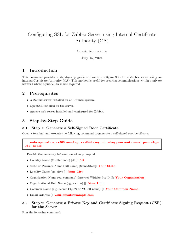Configuring SSL For Zabbix Server Using Internal Certificate Authority