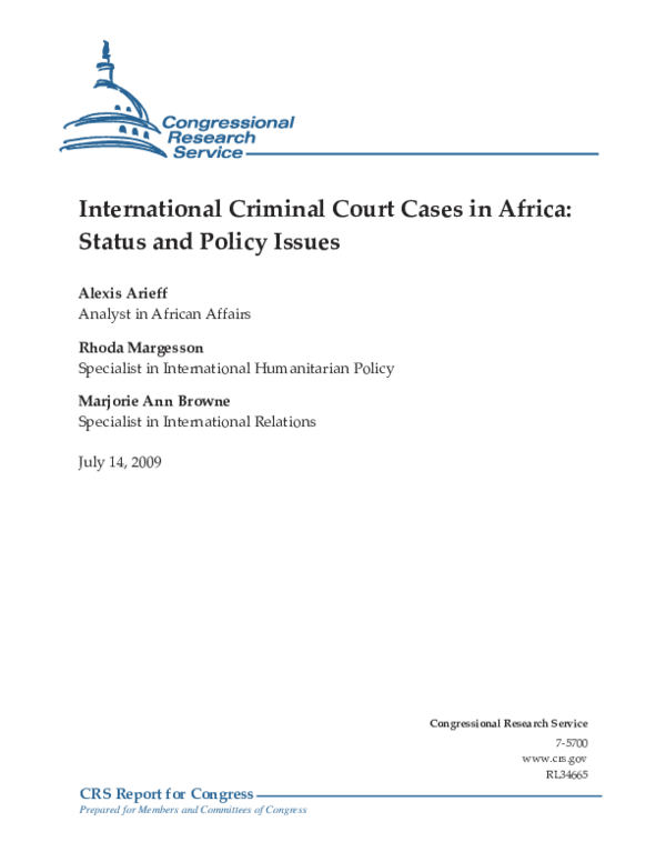 (PDF) International Criminal Court Cases in Africa: Status and Policy