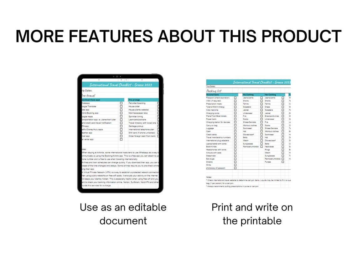 International Packing List Template Google Sheets Packing List Etsy