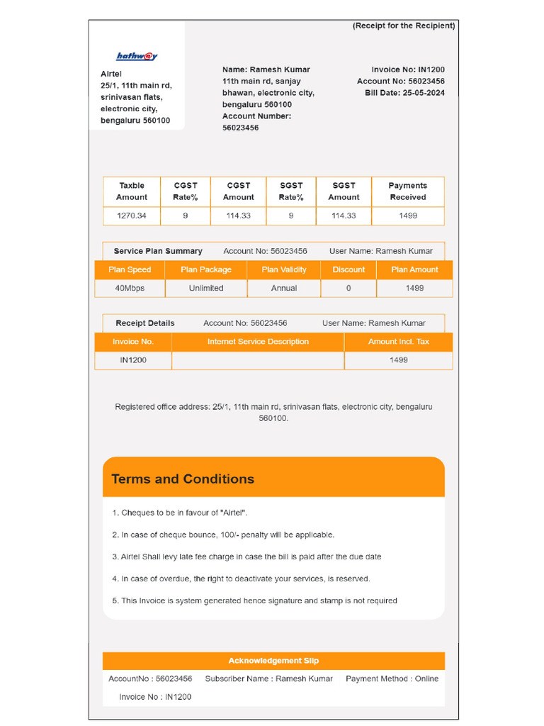 Hath Way internet bill template PDF