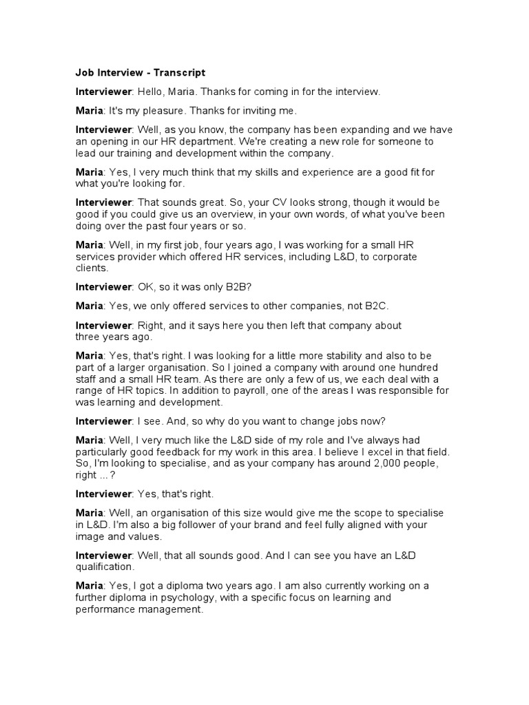 Job Interview Transcript Template ProBizTemplates