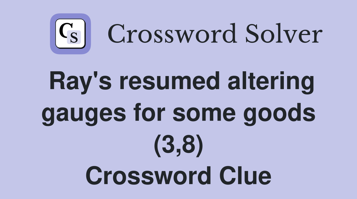 Ray #39 s resumed altering gauges for some goods (3 8) Crossword Clue
